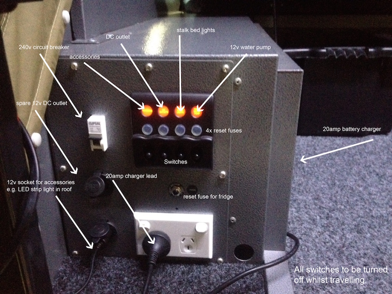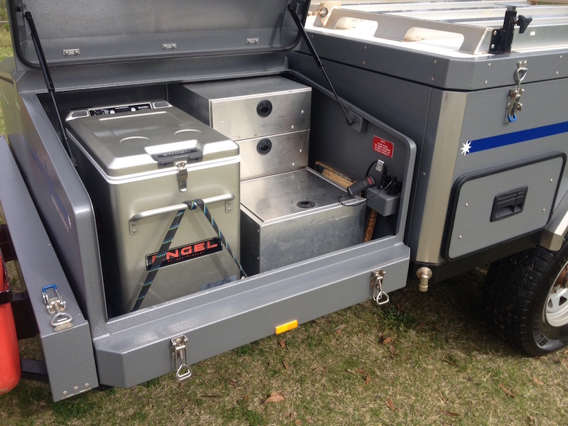 Stainless Sliding Kitchen with 12v pump, sink, and 2x burner cooker, Queen size mattress supplied up to 2 childrens mattresses supplied on request, 2x 4kg gas cylinders, 12v/240v electrical system, 12v Led Strip Lighting in ceiling of camper, Water tank 110L, 3x drawer Pantry, 2m Sun Awning (very quick to erect with NO need for ropes), Camp table + 2 premium camp chairs, Huge Storage Box, 2x jerry can holder, Roof rack on camper, Large tailgate for easy access to storage under bed, Spare Wheel, Ropes, steel pegs & poles, Fire exstinguisher and other inclusions (view the list here).